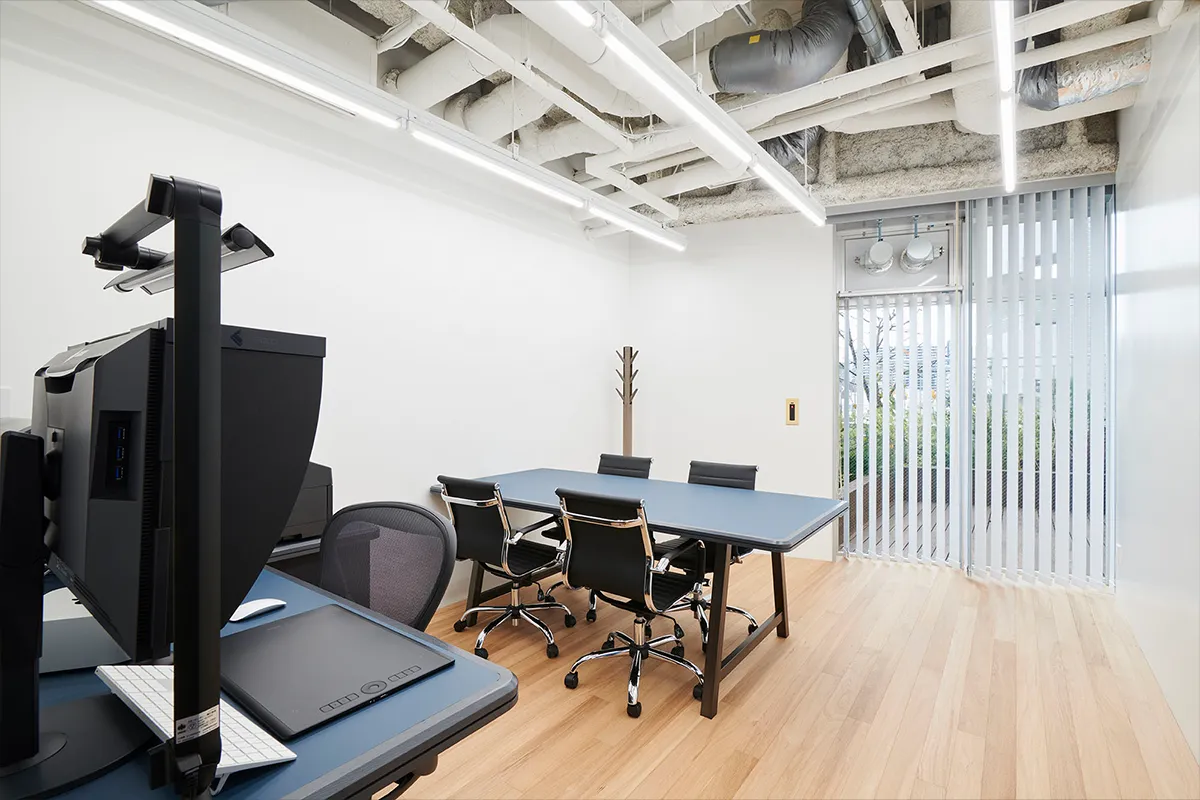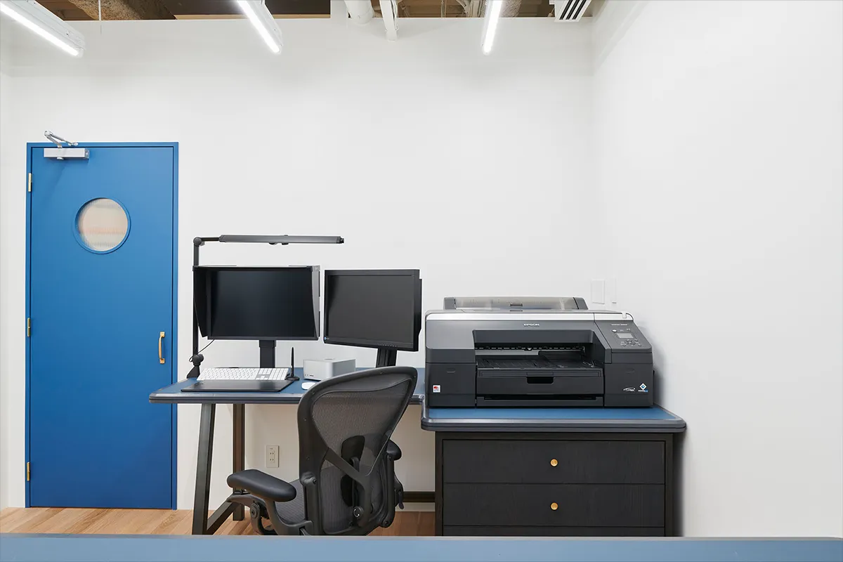 スタジオの上階には、レタッチ立ち会いルームも完備しており、スムーズな連携が可能です。